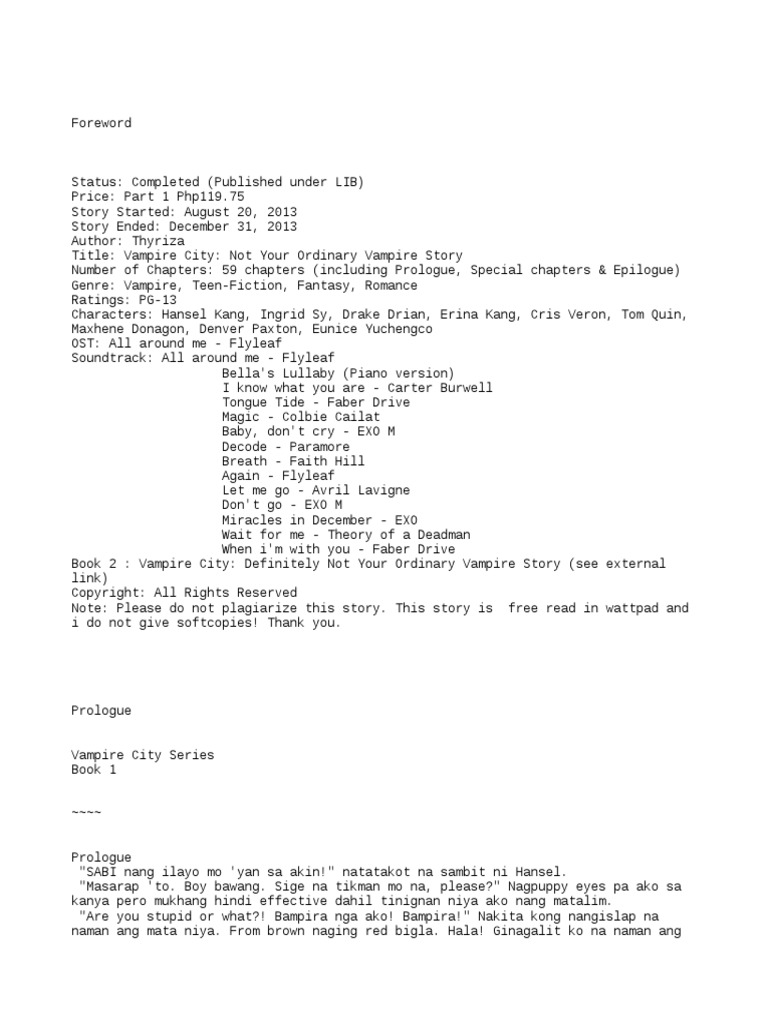 Vampire City 1 Not Your Ordinary Vampire Story Pdf