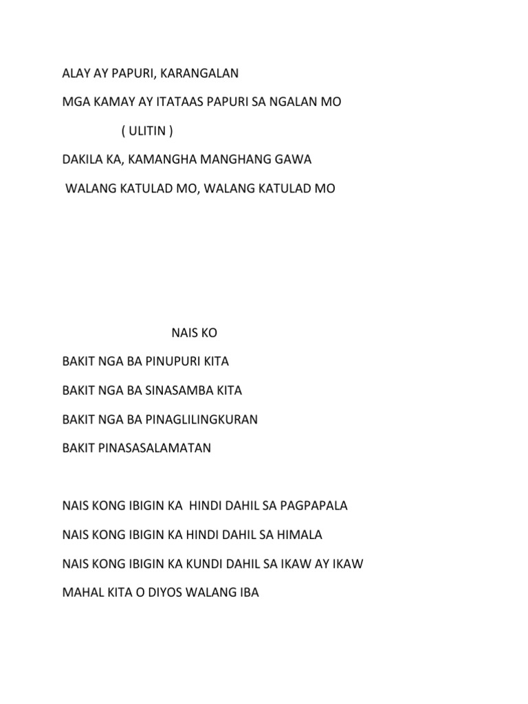 Alay Ay Papuri You Deserve The Glory Tagalog Nais Ko Di Pwedeng Pwede Na Pdf